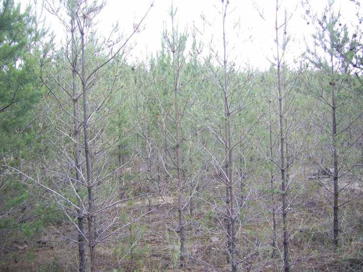 A mass outbreak of pine sawflies occurred in the “Kreminske Forestry and Hunting Management” enterprise in spring 2013 over an area of 1,245 hectares. Significant damage was caused to pine plantations in the Novokrasnyanske forestry unit.
