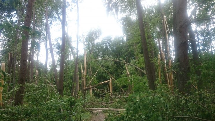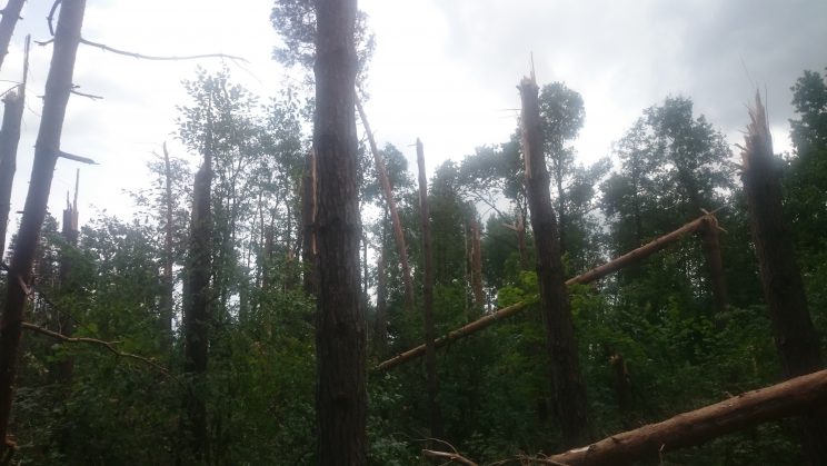 The storm caused damage to forest plantations in Hlynsk, Nedryhailiv, and Tomashiv forestry of the Romny forestry enterprise of Sumy OULMG. The most damage was recorded in the “Velyki Budky” and “Pai” tracts in Nedryhailiv region, as well as the “Vilne” tract in Romny region. According to preliminary data, the total area of damaged forest is up to 1.2 thousand hectares.