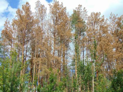 The situation is critical. The first signs of pine dieback were recorded in Ukraine in 2011, and by the end of 2017, bark beetle infestations had spread across northern and central regions. By 2018, affected areas had reached the forest-steppe zones, including Kharkiv region. If the trend continues, Ukraine may lose a significant portion of its pine forests in the coming decades. Studies show that currently, about 142,000 hectares of pine forests under the State Forestry Agency’s supervision are already infested. The beetles first attack the upper branches, progressively killing entire stands. Without immediate intervention, the damage will only accelerate.